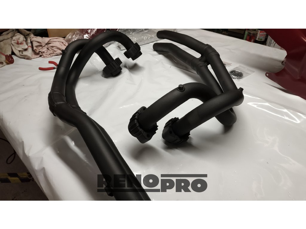 Vypálený lak na výfuky s dobrou přílnavostí na kov a na mnoho dalších materiálů.