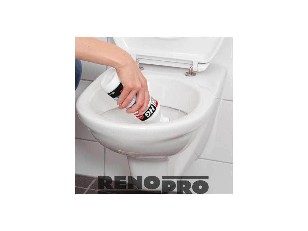 Na problémové nečistoty, jako je silný vodní kámen nebo močová usazenina, se doporučuje HG extra silný gelový čistič na toalety. Pro každodenní rychlé hygienické čištění všeho v okolí toalety, jako je záchodové prkénko, vnější strana klozetu, splachovací nádrž, umyvadlo, baterie nebo dokonce klika, doporučujeme HG hygienický čistič na okolí toalet.